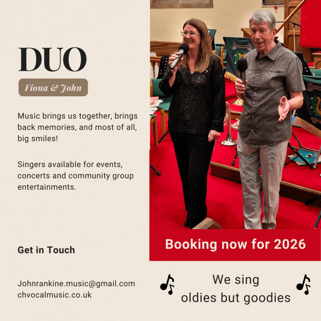 Featuring West Calder Brass Band, Highlights Choir and DUO Fiona and John